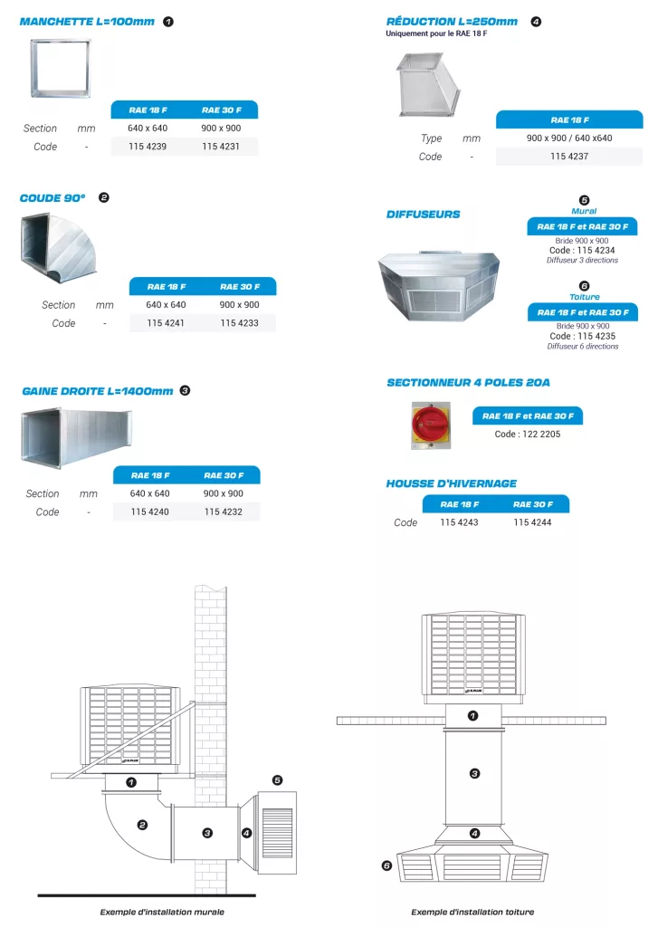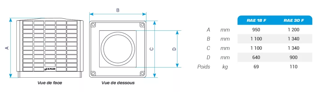 • Le RAE 30 F avec un débit d’air de 30 000 m3/h.