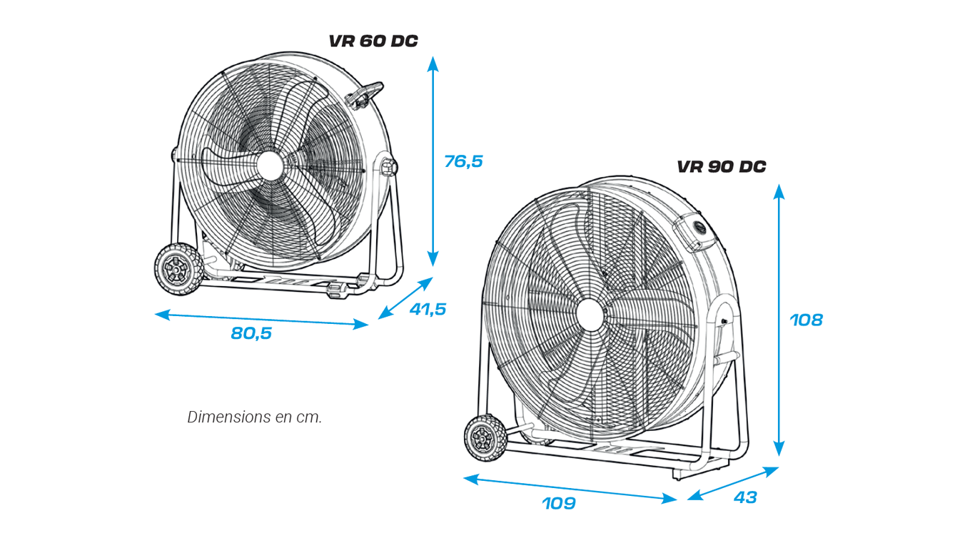 Les ventilateurs industriels mobiles DC VR 60 DC et VR 90 DC s’adaptent à de nombreux environnements : industriels, agricoles ou événementiels. Le modèle VR 60 DC est idéal pour les espaces moyens, tels que les ateliers ou entrepôts, où une bonne circulation de l’air est essentielle.
